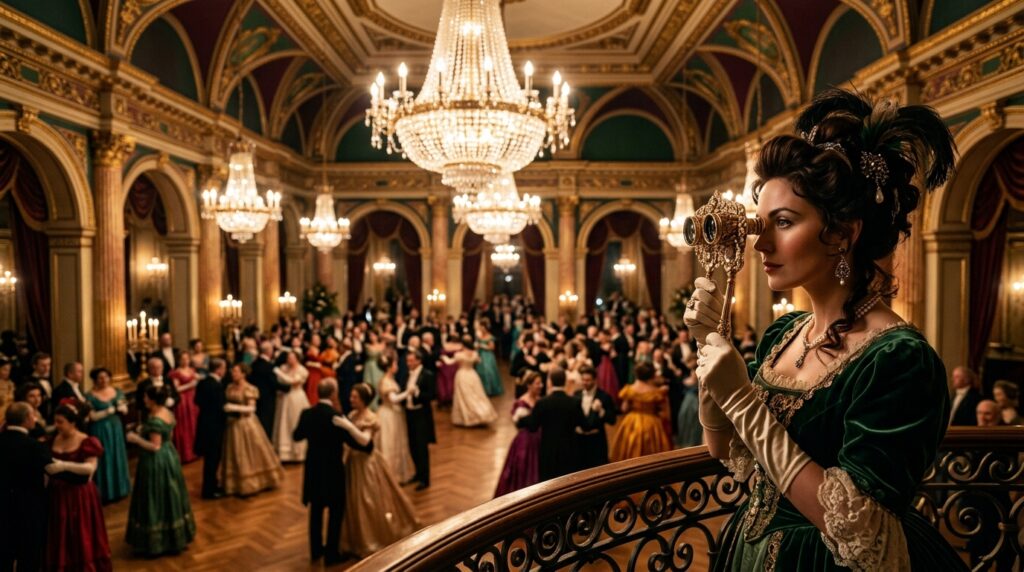 전통적인 서사 매체에서 여성은 언제나 바라보이는 대상, 즉 수동적인 객체로 묘사되어 왔습니다. 그러나 이 작품은 무도회장이라는 전시의 공간을 역이용하여, 남성들을 평가대에 올리고 그들의 육체적 매력을 노골적으로 탐미합니다. 우리는 이 지점에서 단순한 오락거리를 넘어선, 욕망의 주체성에 대한 예리한 인문학적 질문들과 마주하게 됩니다. 과연 스크린 너머로 대상을 관찰하고 탐욕스럽게 소비하는 시선의 진짜 주인은 누구일까요? 화려한 코르셋과 레이스 뒤에 숨겨진 치열한 젠더 정치학의 무대 속으로 깊이 들어가 봅니다.